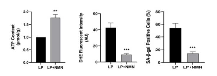 NMN增加ATP水平,减少ROS水平,并减衰老细胞)